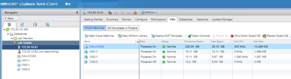 Just for the lab purpose, make sure you have one of your VM in the master ESXi host to be turned on. Click on your master ESXi host and go to VMs tab. If there is no VM on, turn at least one VM on.