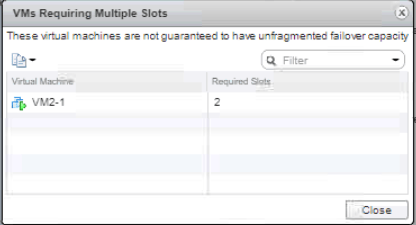 Turn on the VM2-1 and check the Advanced Runtime Info pane on Lab Cluster again. Click Refresh on the top. Now we could see that there are several slots that are available.