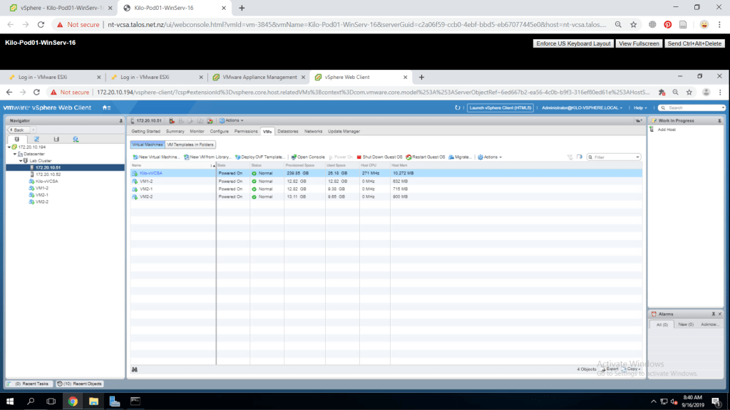 Right-click on Lab Cluster and select Settings. Select VM/Host Rules menu and click Add. A window will appear and Figure 14 will show my configuration of the VM/Host rule. Click OK if done.