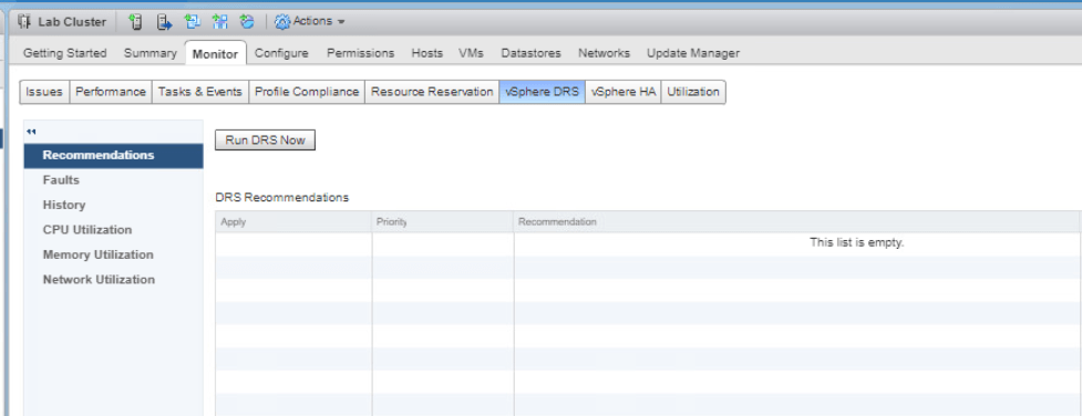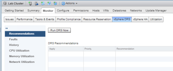 Go to Lab Cluster Monitor tab and select vSPhere DRS. Click Run DRS Now.