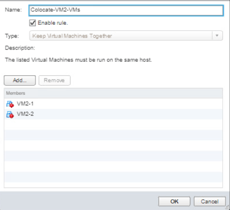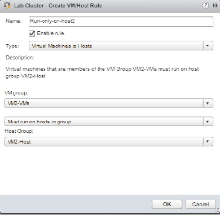 Now, we will create the rules by applying the group in the rules. Go to VM/Host Rules and click Add. The rules configuration will be configured as shown in Figure 26. Click OK if done.