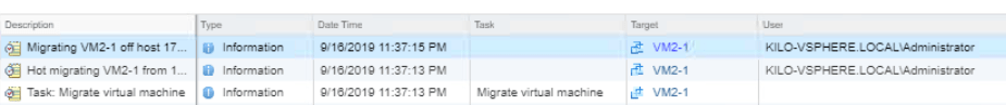 Back to the Monitor tab, click Tasks & Events then select Tasks and you can check the VM migration process.