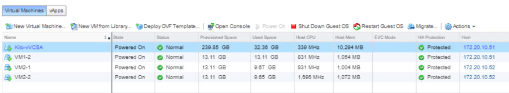 Click on Lab Cluster and select the VMs tab. Right-click in an empty space in the columns and select Show/Hide Columns. Check the Host check box and click OK.