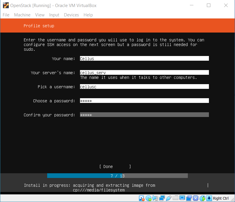 You will go through proxy, archive mirror, filesystem configuration and should be left as default. Once you reach the profile setup, fill in the information accordingly to your preference.