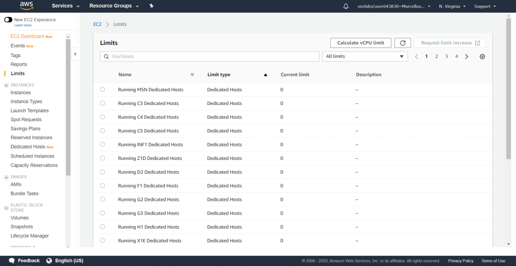 AWS EC2 has limitations on the usage of resources such as images, instances, volumes and snapshots. It usually has a default value but different region may have different limits. To check, go to Limits menu on the left. You will see the different kind of resources and its limits for this particular Amazon EC2.